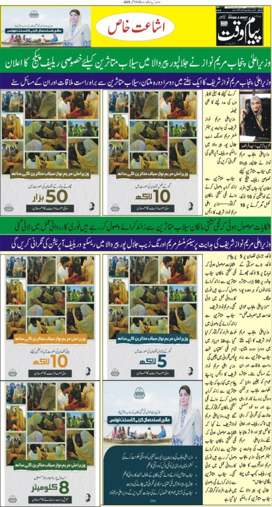 The CM Punjab Relief Package 2025 is a strong step by Maryam Nawaz to support flood-affected people in Multan and Jalalpur Pirwala. The package covers almost every kind of loss including homes, lives, injuries, agriculture, livestock, and small businesses.