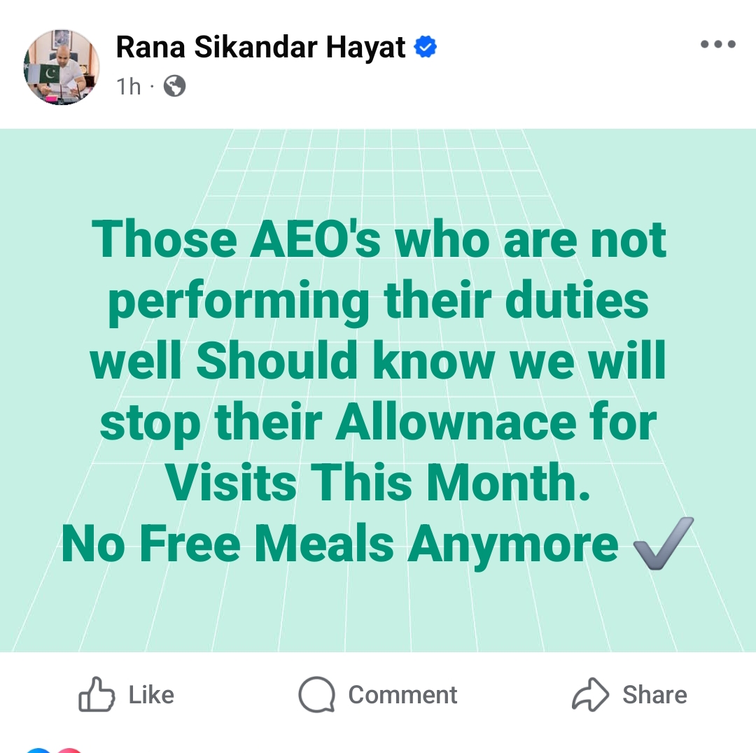 The statement clearly mentioned, “No free meals anymore.” This means that no one will get benefits without working. Every officer must perform their duty honestly and with full responsibility.